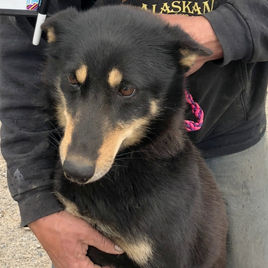 Cash came to us from Alaska along with her lookalike, Piney. They both have black coats with some orange around their face and paws. Their buddy Clyde looks the same, except he’s a bit chubbier. Cash is a friendly, quiet girl who enjoys playing outside with Cashew, Piney, Piper, Kansas, and Clyde.